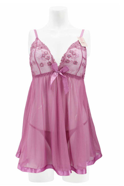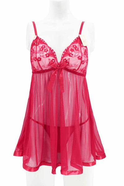 This sexy sleepwear is made of 90% nylon, 10% elastane. This babydoll features sheer lace cups with a deep V-neck, soft mesh skirt and halter satin bow ties making you look more sexy and charming.