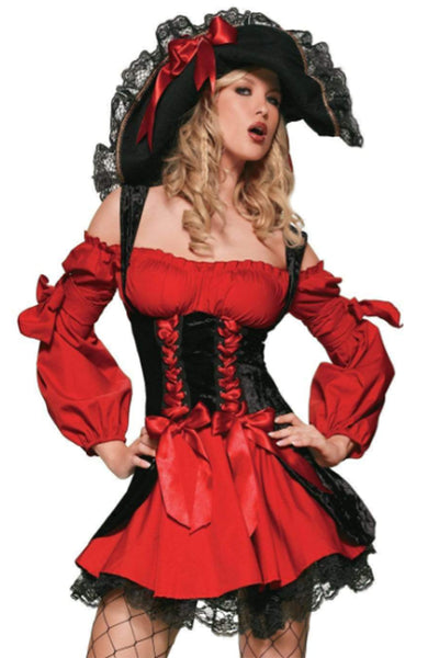 Sexy Pirate Style: Features a cold shoulder peasant top and layered skirt for a sultry sea-faring look
