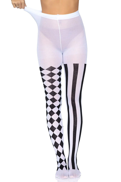 If you love playful patterns, the Aura Harlequin Women’s Tights are made to stand out. These festive novelty pantyhose feature a bold mismatched design with a checkered pattern on one leg and stripes on the other for a cute, quirky look that’s impossible to ignore. Crafted from breathable micro net fabric with a comfortable stretch, these tights are perfect for Halloween costumes, themed parties, or adding a fun twist to everyday outfits.
