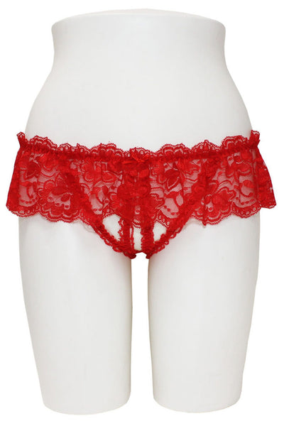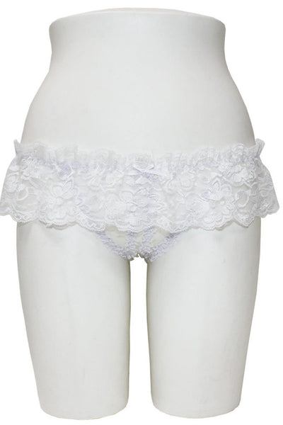 Crotchless Panty with Lace Skirt is made of 85% Nylon/15% Spandex