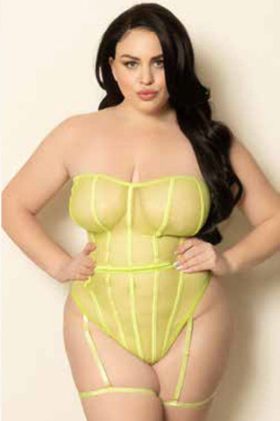 Strapless fishnet teddy features zipper back, shiny elastic belt, gold hardware, and removable leg garters. Perfect for boudoir shoot, dating night, anniversary, wedding night, honeymoon lingerie, everyday bra and fits for every sweet night.
